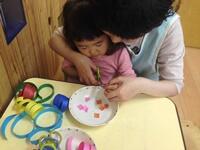 「これ貼ってみる?」「上手に切れたね」親子の会話がはずみます。