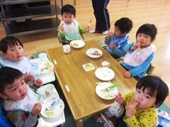 朝から雨がたくさん降って大好きなお散歩には行けませんでしたが、お部屋でたくさん遊びお腹がぺっぺこ。今日もおいしい給食をもりもり食べました☆