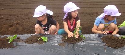 サツマイモの苗植えをしたり、畑の水やり、がんばっています。