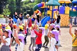 子どもたちがみんなが元気に育ち、大きくなったことをお祝いする5日「こどものひ」にちなんで「ミニ運動会」を楽しみました
