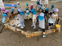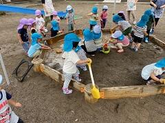 雨上がりの次に日の砂場は大洪水・・・でも子どもたちは大喜びでした!(^^)!