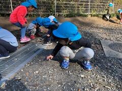 砂利駐車場では、たくさんの枯れ葉があり、子どもたちも大喜び!!
