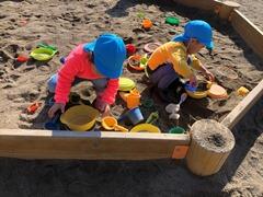 カバさんのご飯もみんなでお腹いっぱい食べさせくれます。砂あそびでは、いろいろな器を用意して、ケーキやアイス・ご飯など見立てあそびが本格的になってきました!