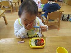 「今日お弁当だよ!」と声をかけると「お弁当!!」と喜んで保育園に戻りました(笑)