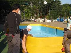 この日のためにプール設置を手伝っていただいた保護者の皆さま、大変お世話になりました。