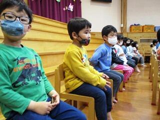 さすが、さくら組さん。椅子にしっかり座って聞くことができましたひまわり・ばら組さんだって顔と体をしっかり向けて聞くことができましたね