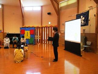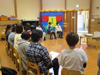 そのあとは、しんちゃん(腹話術)とお話をしながら、4つの約束を再確認しんちゃんが知っていることを教えてもらったり、みんながしんちゃんに教えてあげたりなど、最後にはすっかり仲良くなったね