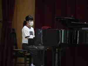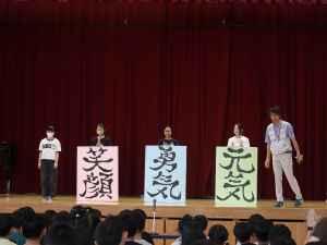 児童の伴奏に合わせて「笑顔」「勇気」「元気」に歌いました。
