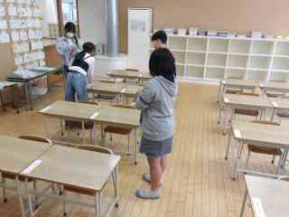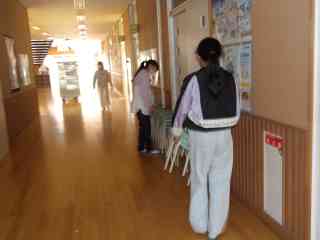 新入生の教室をきれいにしています。