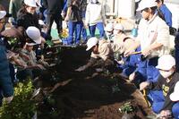 1・3・5年生が、花壇の花植えをしました。協力し合いながら、綺麗に植えることができました。