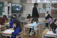 町学力調査が全学年一斉に行われました。教科は国語。(6年生は社会もあります。)