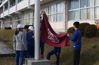 掲揚用の校旗を、後援会の協力を得て新調しました。今までのも、海賊船の旗っぽくてかっこよかったのですが、新しいものはやはり気持ちいいです。早速、児童に揚げてもらいました。