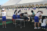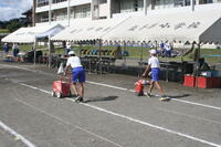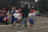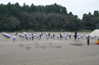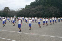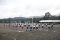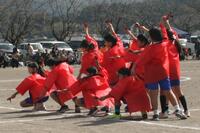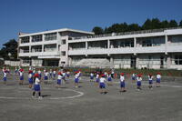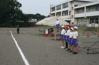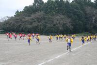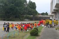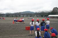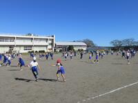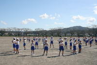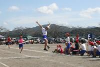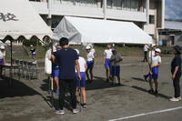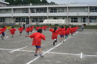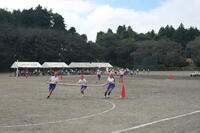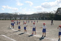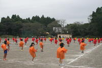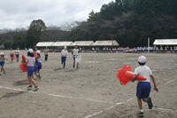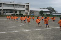 1,2年生が合同で体育を行いました。ボールをバトン代わりに、リレー競走を頑張っていました。