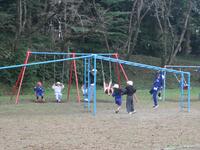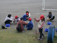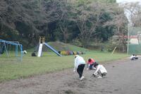 春を思わせる陽気です。サッカー、野球、フラフープ…、いろいろな遊びを楽しんでいます。