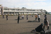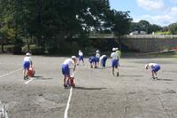 秋晴れの下、子どもたちは元気に体を動かしています。