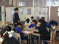算数の授業を行いました。大学から先生が授業を見に来ました。実習生は、やや緊張の面持ちでした。