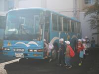 4年生が校外学習に出発しました。行き先は、芳志戸浄水場と芳賀地区クリーンセンターです。