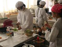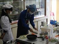 6年生は家庭科(調理実習)、3年生は図工(版画)の授業です。