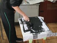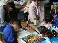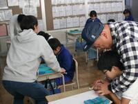 先週に引き続き、保護者の方々にお手伝いいただき、木版画の学習を行いました。