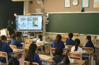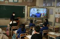 韓国の小学校とオンラインでつながり、英語で、互いの学校の様子を紹介し合いました。