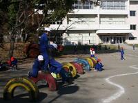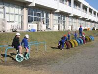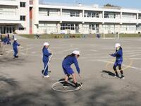 春を思わせる陽気です。サッカー、野球、フラフープ…、いろいろな遊びを楽しんでいます。