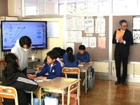 益子中の1年生4名が、総合の授業で益西小のことについて調べに来ました。