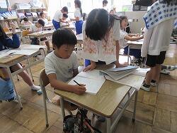 3年生が、今日の社会科校外学習の振り返りを、チラシを見ながら行っていました。体験と知識をしっかりと結び付けています。
