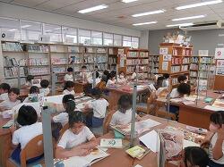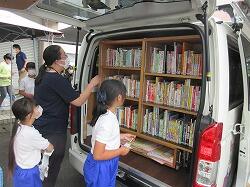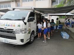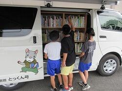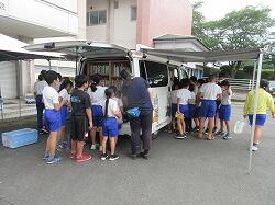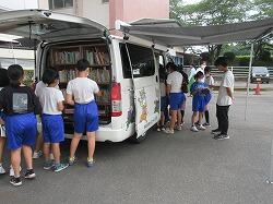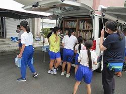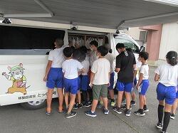 今日は、子供たちが楽しみにしている「とっくん号(移動図書館)」が、来校しています。