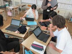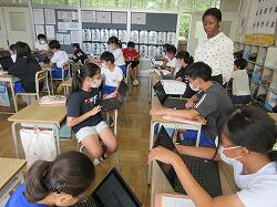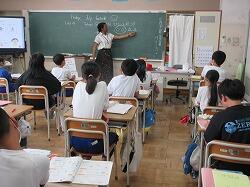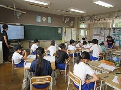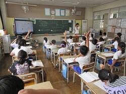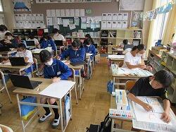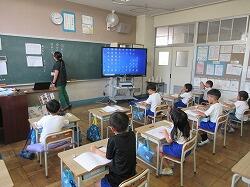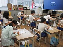 3年生が、ローマ字の学習に取り組んでいました。ローマ字での「切手(きって)」の表し方について考えています。「切手」と「来て」の違いは、学力テストにも、よく出題されます。