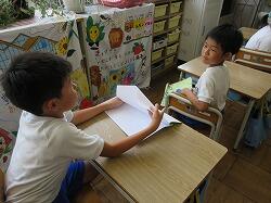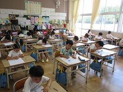 1学期はひらがなや一から十までの漢字を覚えました。また、数字が書けるようになり、たしざん・ひきざんも出来るようになってきました。