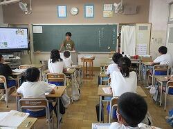 4年生が、社会の授業で「水を大切に使うために、自分ができること。」について考えていました。平均すると、1人が1日に使う水の量は、340リットルです。子供たちからは、「そんなに使ってないよ。」「トイレでも使うからかな?」「お風呂でも、たくさん使ってるよ。」など、たくさんの声があがっていました。