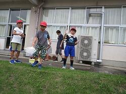 外の気温は、35℃です。子供たちは、室内で楽しく過ごしています。