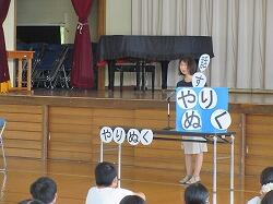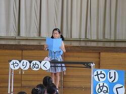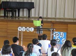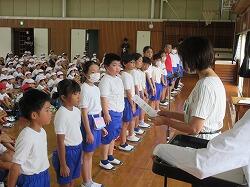 校長先生から、「やりぬく」をキーワードに夏休みが過ごせるよう、話がありました。作文発表では、2・4・6年生の代表児童が堂々とした態度で発表を行うことができました。聞く側の児童も、とても立派な態度でした。