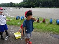 暑かったのですが、夢中になって水を運んだり、砂場の土を掘ったりしました。