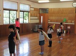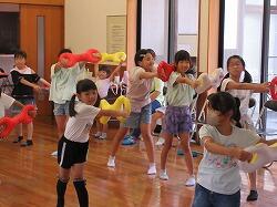 いろいろな道具を使いながら、楽しく運動することができました。子供たちのたくさんの笑顔が、公民館にあふれていました。