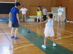 投げ方やルールを教えていただいた後、大人チームと子供チームに分かれて、試合を行いました。結果は、大人チームの勝利でした。