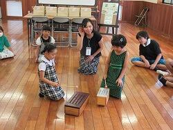 いろいろな楽器の演奏体験や、身近なものを使っての楽器作りなどが行われました。子供たちは、とても楽しそうに活動していました。