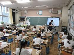 昨日の2校時(1・2年生)に続き、今日も2校時(5・6年生)・3校時(3・4年生)に、交通安全教室が行われています。安全な歩行や自転車の乗り方について、学習しています。クイズなどを交えながら、楽しく学習しています。