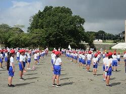 今日の西小タイム(運動タイム)は、集団行動の練習を行いました。「気をつけ」「休め」「礼」などについて、練習をしています。