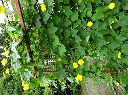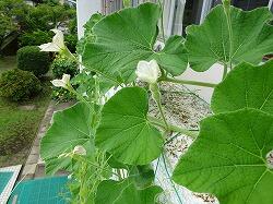 ヒョウタンにも花が咲きました。実もでき始まっています。