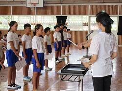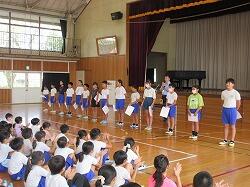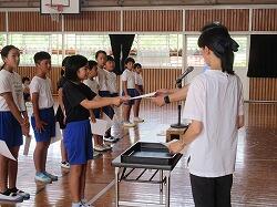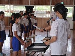暑さ対策のため、1校時前に第1学期終業式を行いました。1学期の生活を振り返り、努力の足跡や成果を互いに認め合う機会となりました。