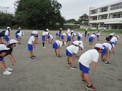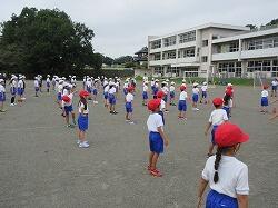 今日から運動会練習日課が始まり、1校時終了後の西小タイムに全体練習が行われます。