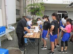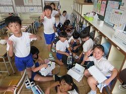 今日は、2~4校時に、2・4・6年生が着衣泳の講習を行っています。ラッコ倶楽部(芳賀地区広域行政事務組合消防本部署員の有志)の皆様から、水難事故に遭遇した場合の対処法について、ご指導いただきました。写真は、2年生(3校時)の様子です。