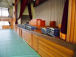 5年生が卒業式の式場を作りました。午前中に椅子を移動させてシートをきれいに拭きました。午後、椅子や机を並べて式場を完成させました。