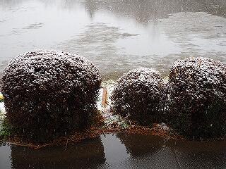 3月下旬としては異例の雪が降りました。朝から関東に強い寒気が入り込み、朝から雪が降り、寒い1日となりました。午前9時30分の気温は0.5℃でした。築山も雪が積もり始めました。