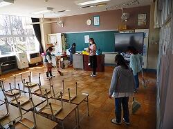 今日は各クラスで学年末のお楽しみ会や教室や下駄箱の掃除が行われていました。