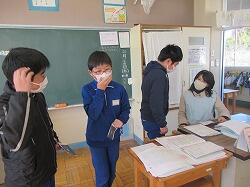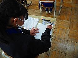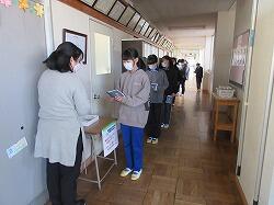 5年生が6年生の代役を務めて、在校生から記念品を渡す練習をしました。