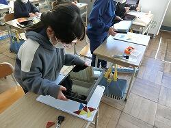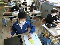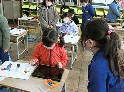 算数「かたちづくり」では、色板を使っていろいろな形を作る学習を行いました。作った形を友達に紹介するために、タブレットを使って写真を撮りながら学習を進めました。初めてカメラ機能を使いましたが、子どもたちはあっという間に使い方を覚えて楽しく学習をしていました。授業の最後には、写真を友達に見せながら自分が作った物を紹介することができました。授業が終わってからは「楽しかった」という声がたくさん聞こえてきました。