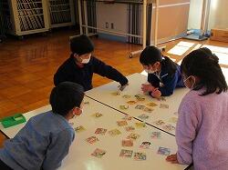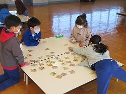 生活科の時間に昔遊びをしました。今回は、かるたやけん玉、お手玉で遊びました。けん玉やお手玉は初めて遊ぶという子もいましたが、友達に教えてもらいながら楽しく遊んでいました。