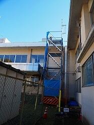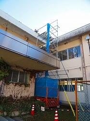 前校舎と後ろ校舎をつなぐ「2階通路の屋根」の雨漏り工事を大々的に行います。